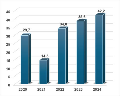 Y también dentro de nuestras fronteras se visualiza el crecimiento continuo de la asistencia de espectadores a ver cine nacional. Desde el año de la pandemia se observa la recuperación existente, alcanzándose en 2024 los 42.2 millones de espectadores. Todo ello, gracias a películas como las siguientes que se situaron en el Top-20 de los países iberoamericanos en el año 2024: